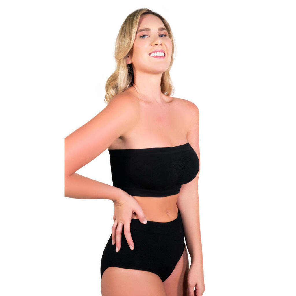 I Love Shape - Tu Belleza Interior Un look básico cómodo imprescindible. Set de 2 tops tipo strapples sin costuras. Confeccionados con elastano para una mayor resistencia, elasticidad y transparencia. ¡Invisibles con tu outfit del día a día! Incluye una pieza de pantys de corte bajo tipo bikini sin costuras. ¡Arma tu look interior con I Love Shape! Escote Strapples Sin Costuras Composición Exterior: 86% Nylon / 14% ElastanoInterior: 86% Nylon / 14% Elastano